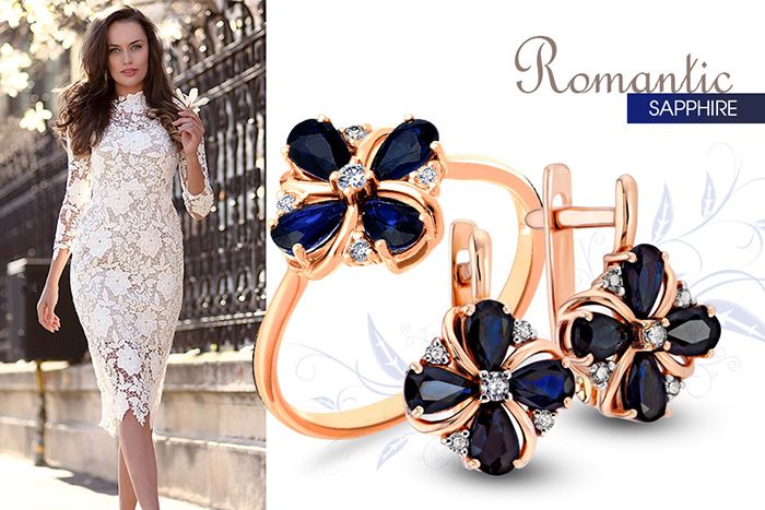 Флористические мотивы никогда не выйдут из моды, а в сочетании с вечным сапфиром создают особо беспроигрышный вариант. Каждый изгиб красного золота, каждый мягкий отблеск огранки синих камней и вот – Вы на волне романтики и уюта: